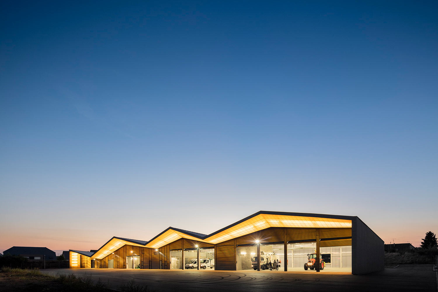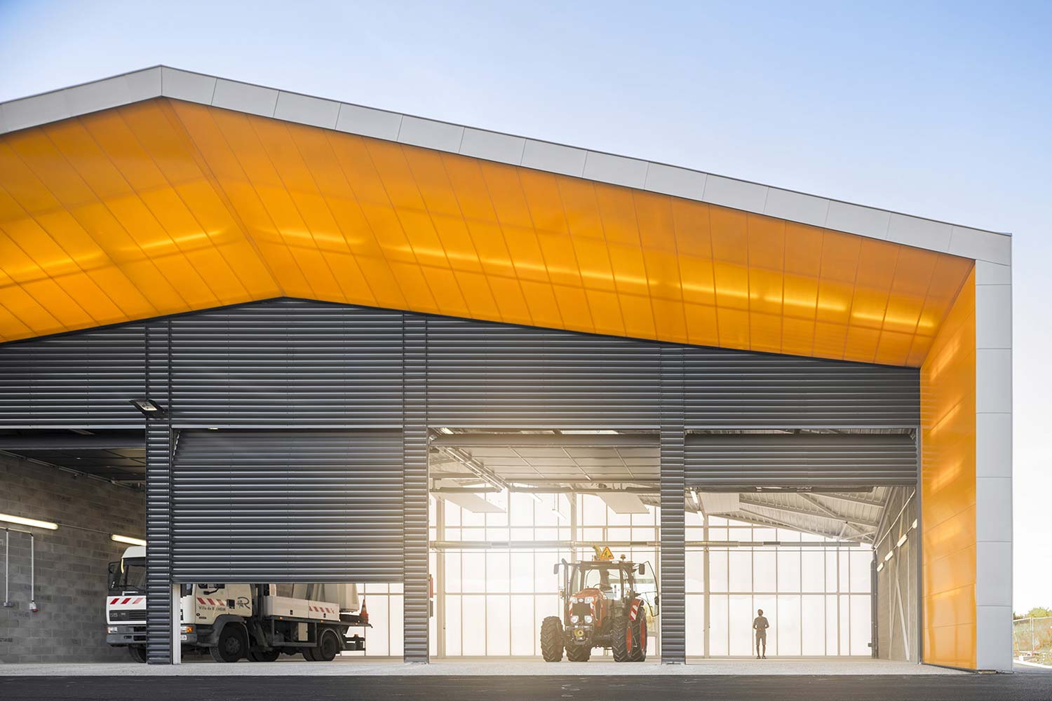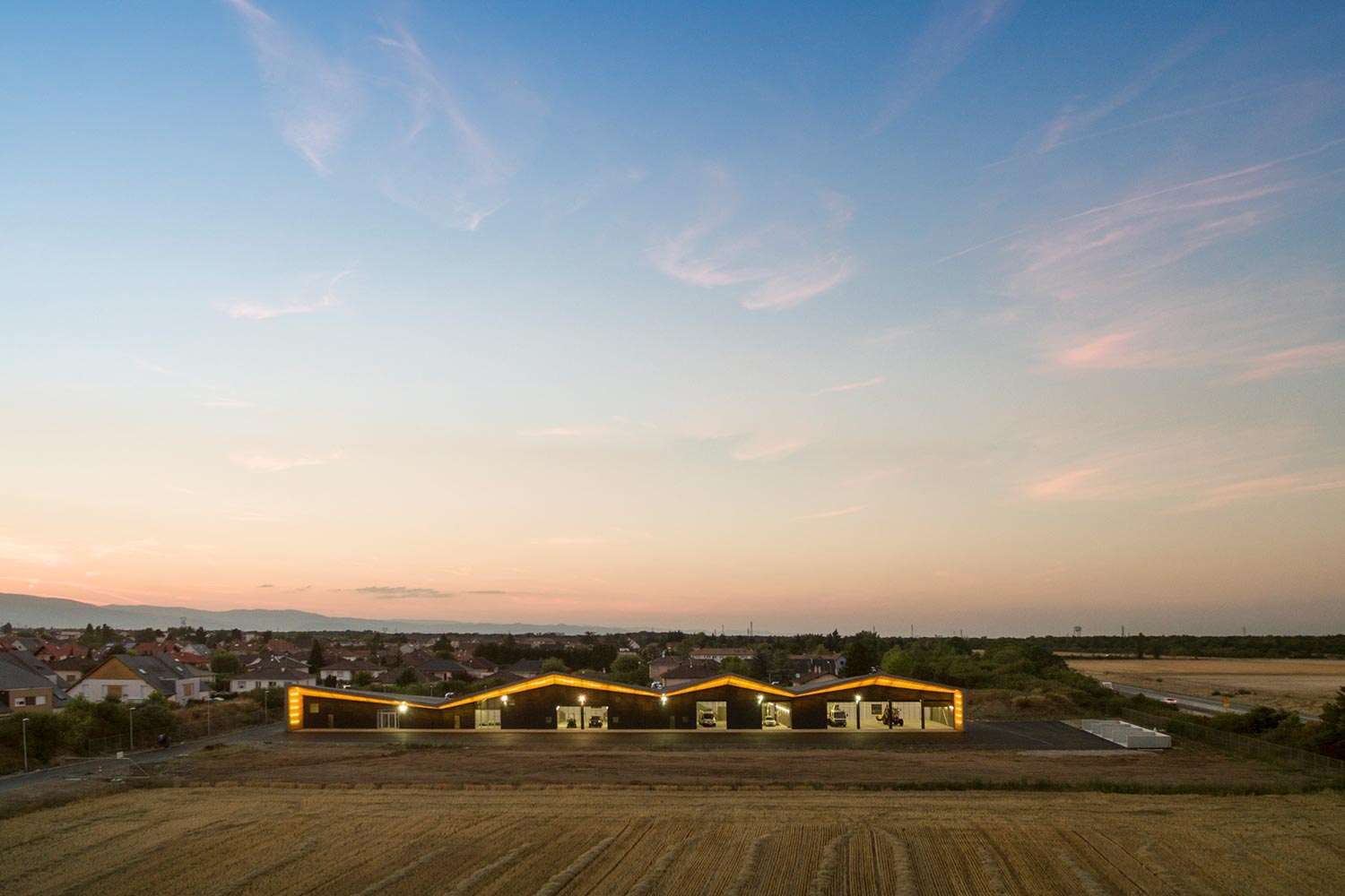 Un contexte agricole d’un côté et une zone d’expansion résidentielle de l’autre ont suggéré pour le centre technique municipal de Rixheim une architecture imposante mais bien intégrée dans le paysage et respectueuse des modèles architecturaux locaux. Les caractéristiques du site ont conduit à concevoir un bâtiment unitaire, ce qui présente plusieurs avantages : tout d’abord, la compression du volume et sa compacité garantissent des économies sensibles tant sur le plan économique que sur celui de la construction ; en outre, du point de vue de la durabilité environnementale, cela permet de réduire considérablement les frais de gestion et d’entretien ; enfin, il parvient à donner une image globale cohérente avec le paysage environnant, permettant à l’architecture du bâtiment d’acquérir une forte valeur symbolique et identifiable même à l’échelle urbaine, puisqu’il devient un véritable point de repère.