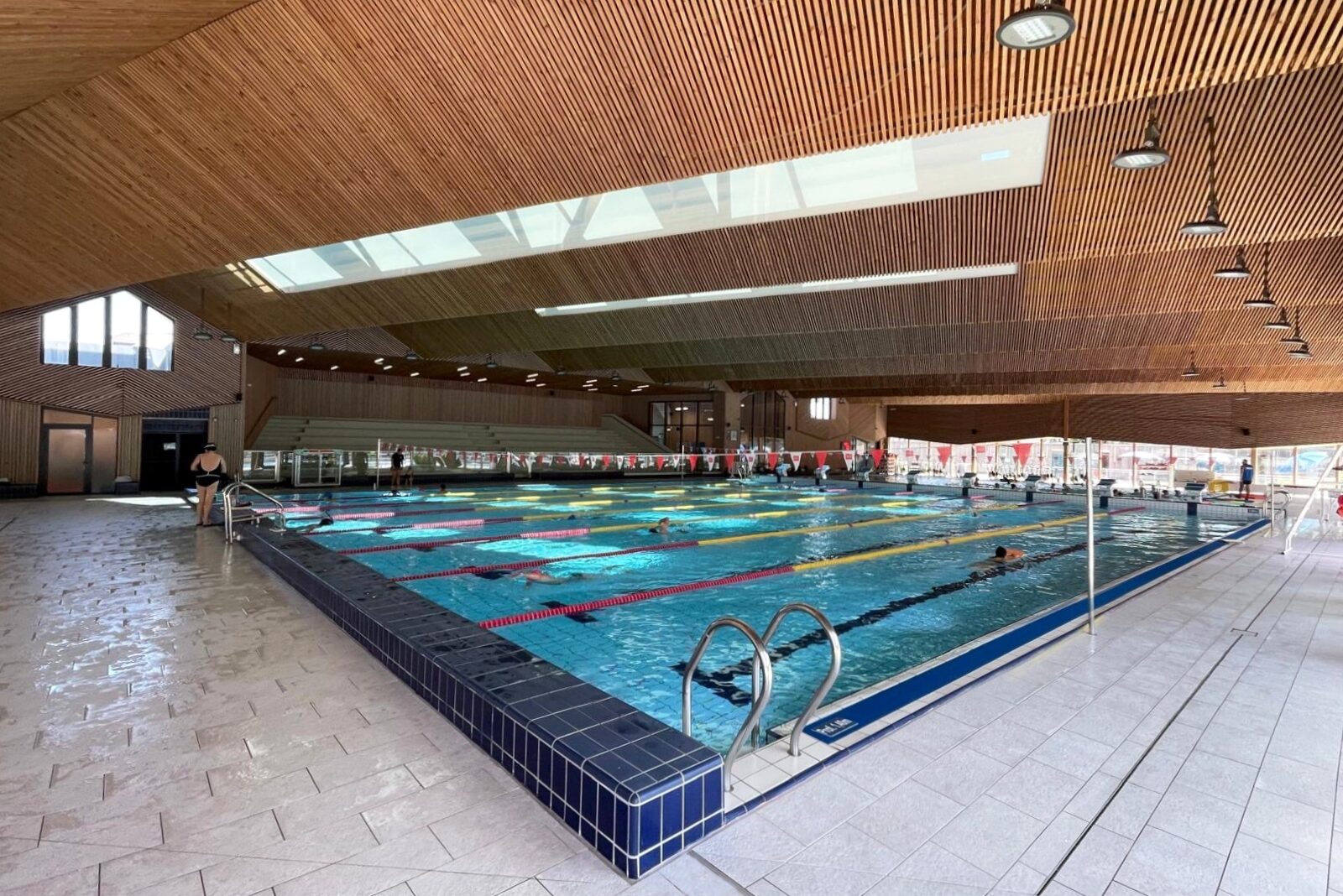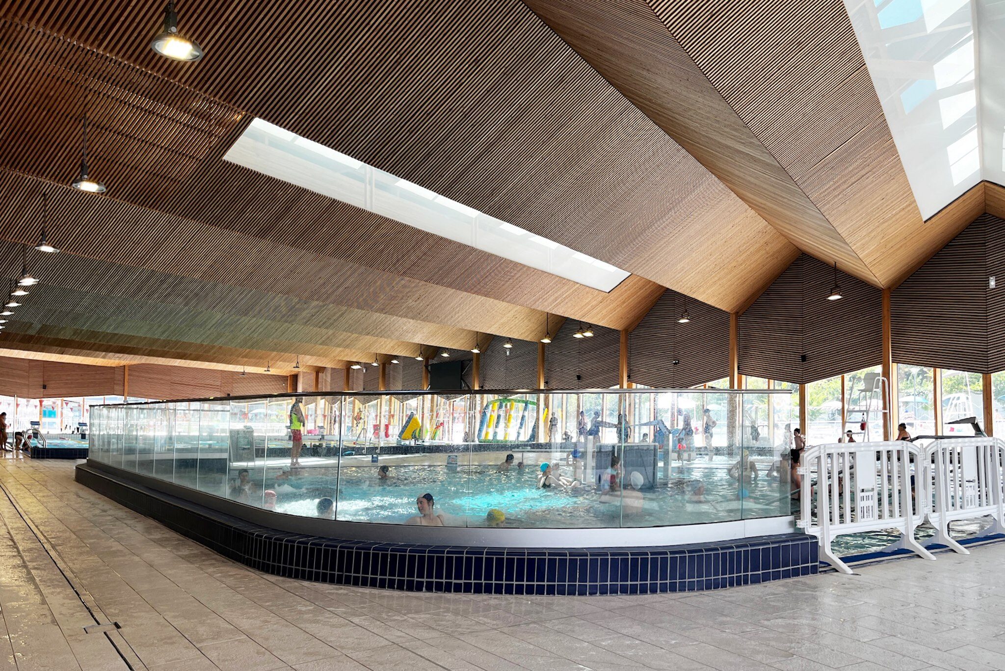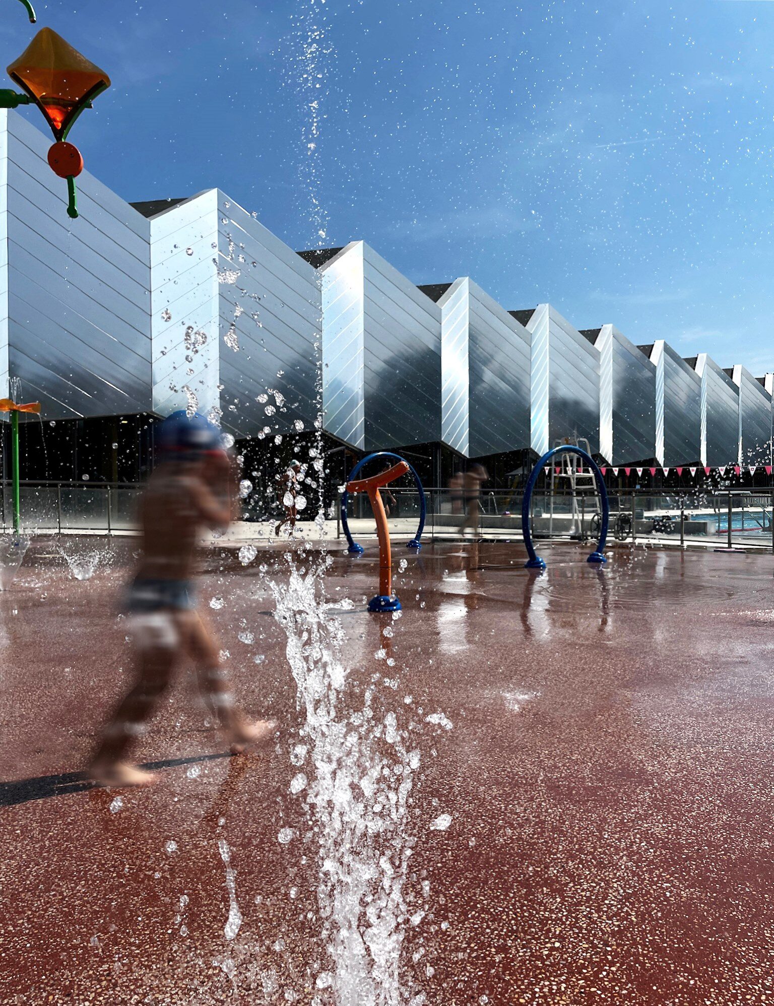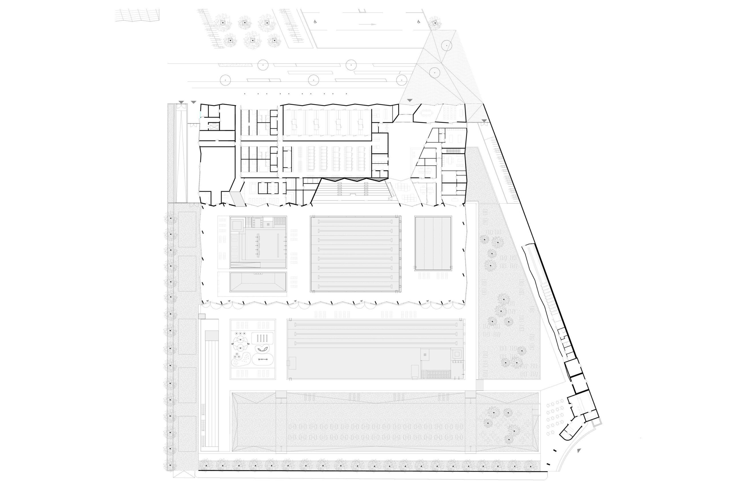 La proposta di progetto per il centro natatorio di Chambery parte dallo sviluppo del tema della piscina inteso come contenitore architettonico associato ai seguenti temi: spazi verdi, sport, salute, socializzazione, studio. L’analisi del contesto ha condotto alla definizione dell’impianto urbano e alla caratterizzazione dell’edificio attraverso un solo elemento architettonico: la copertura. La forma dei vicini capannoni industriali e la ripetizione formale dei tetti delle unità residenziali a Est e a Sud del sito diventano il motivo di composizione della copertura e della facciata. L’organizzazione degli spazi interni dell’edificio tende all’ottimizzazione delle superfici rispettando le quantità prescritte e mira, attraverso lo studio dei flussi dei diversi utilizzatori, alla distinzione funzionale per una migliore utilizzazione delle diverse unità. L’utilizzo dei due materiali principali per il rivestimento esterno e per la copertura, l’alluminio e il vetro, esalta la composizione delle facciate con un’alternanza di fasce opache e vetrate.