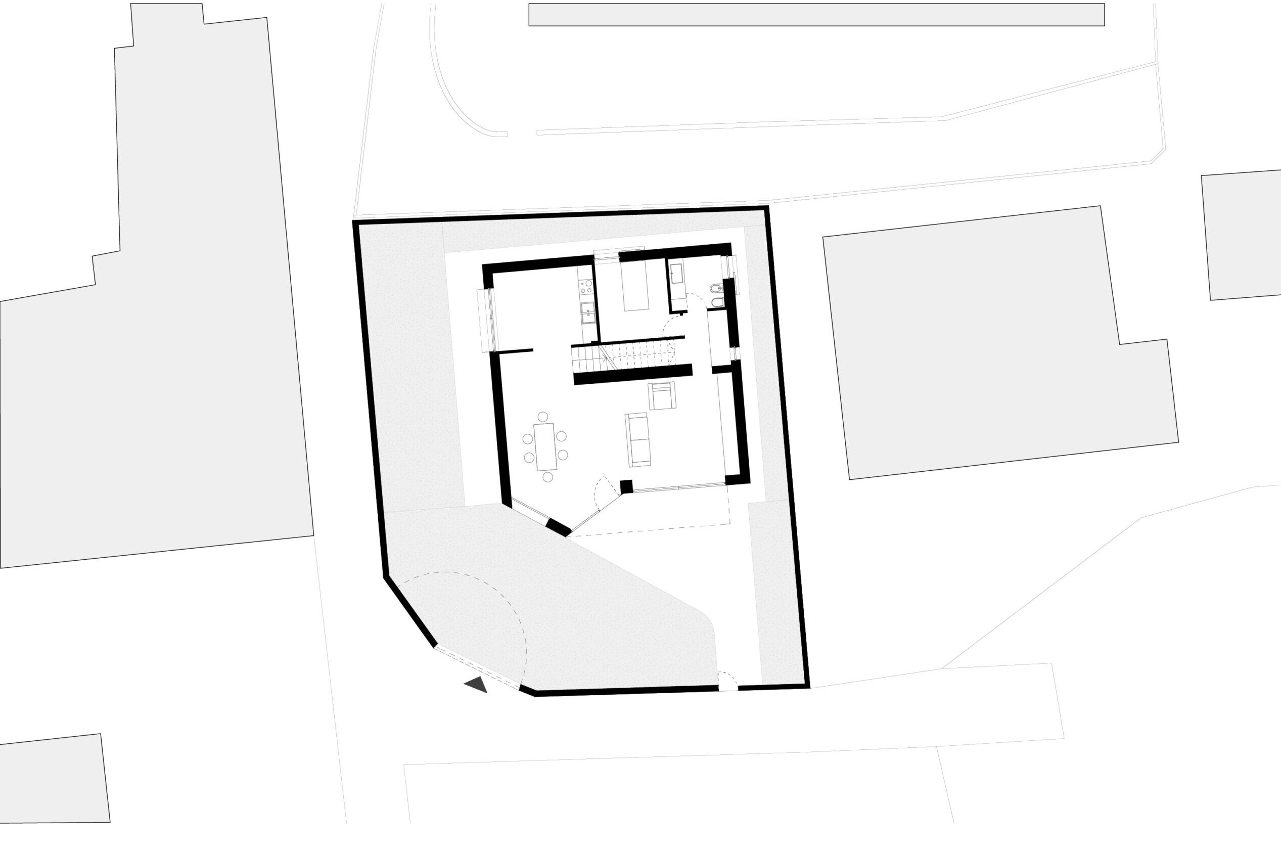 La demolizione e ricostruzione di un anonimo edificio residenziale degli anni 70 ha costituito l’occasione per recuperare il suo rapporto con il tessuto urbano adiacente e con il paesaggio dell’altopiano clusonese. Il nuovo edificio dal carattere morfologico estremamente semplificato conserva le proporzioni e le volumetrie originarie. Il linguaggio compositivo adottato cerca di reinterpretare i caratteri essenziali della tradizione alpina: corpo monolitico e compatto in cui la massa muraria definisce un confine netto tra interno ed esterno. L’articolazione delle aperture sui prospetti cerca invece una maggiore libertà, mirata a portare luce e vista agli interni. Ogni elemento costruttivo (copertura, balcone, loggia etc) è stato ridotto e asciugato di tutti gli elementi decorativi e superflui.